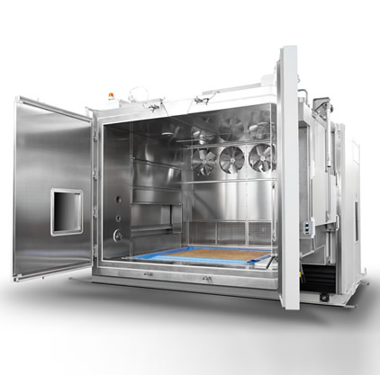 步入式試驗(yàn)箱應(yīng)用于工業(yè)、自動化零組件汽車部件、電子電器件、塑膠、化工、制藥工業(yè)及相關(guān)產(chǎn)品耐熱、耐寒測試,用于大型零件、半成品、成品的溫濕度環(huán)境測試,如:電腦終端機(jī)、汽車零組件。試驗(yàn)箱主要由控制面板、配電盤、保溫庫板、送風(fēng)機(jī)、加熱器、加濕器、冷凍機(jī)組合而成,主要規(guī)格可區(qū)分為6種標(biāo)準(zhǔn)室內(nèi)尺寸及24種不同條件測試規(guī)范。